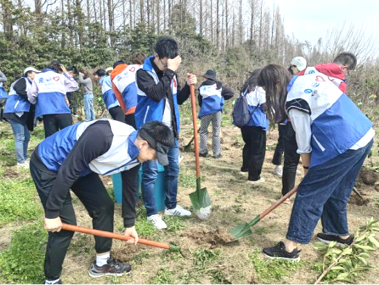 在汗水澆灌下,30余棵冬青樹苗成功“安家”、迎風而立,在悄然而來的春意中,志愿者們仿佛看到了小冬青已然亭亭如蓋,點綴申城風光。