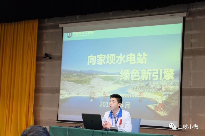 為讓同學們對向家壩工程和水電工程有一個直觀了解,三峽青年志愿者們首先帶領同學們參觀了工程建設展覽館,向家壩與溪洛渡工程建設部王毅華主任在這里為本次活動致辭。兩名來自長江電力向家壩電廠的青年志愿者還以“向家壩電站——綠色新引擎”和“向家壩升船機簡介”為主題,為孩子們帶來水電科普講座。