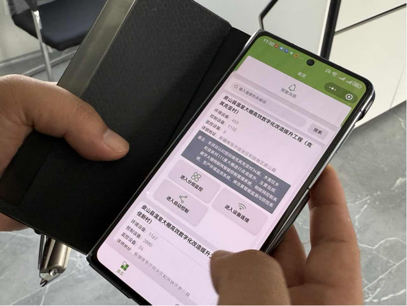 ▲ 智能大棚手機端操作系統(tǒng) 攝影:孫愷