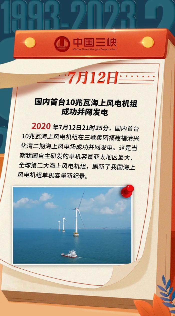 三峽 · 歷史上的今天 | 國內(nèi)首臺(tái)10兆瓦海上風(fēng)電機(jī)組成功并網(wǎng)發(fā)電(7月10日-7月16日)