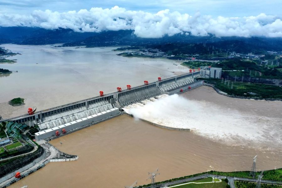 ▲?2020年8月20日,三峽建庫最大洪峰7.5萬立方米每秒通過三峽工程。攝影:湯偉