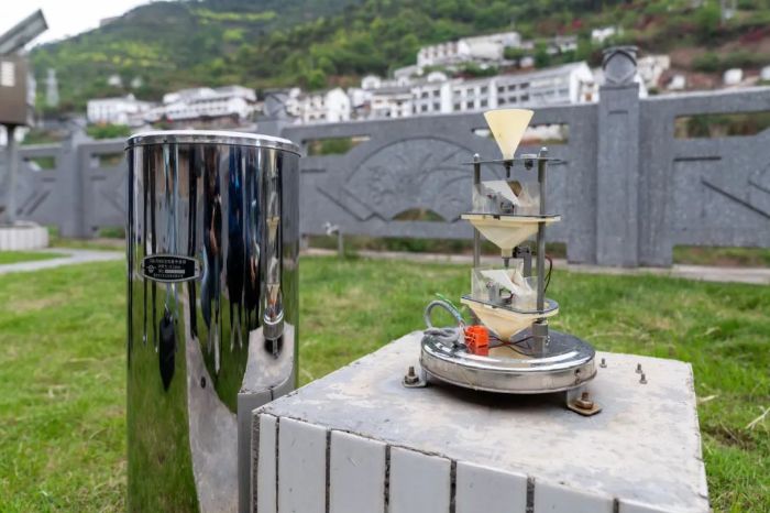 “上層漏斗用于收集雨水,中間層是緩沖翻斗,而底層則是計數翻斗。翻斗的容量通常設定為0.1-0.5毫米。一旦雨水將翻斗裝滿,翻斗會因失衡而翻倒,這一動作會觸發脈沖信號并進行計數,隨后被數據采集器接收,經過處理便能轉化為準確的降雨量數據。”