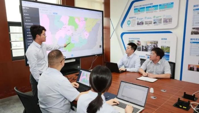 ▲ 三峽梯調水資源高效利用研究所正在進行會商討論 長江電力供圖