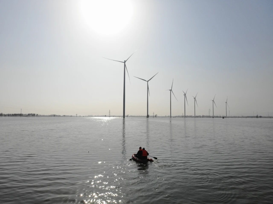 此時(shí),水位雖降,但大部分風(fēng)機(jī)基礎(chǔ)仍浸泡在渾濁的洪水中,這讓宋雨生心急如焚。“要想恢復(fù)發(fā)電,讓風(fēng)機(jī)早一天轉(zhuǎn)起來(lái),就得趕緊進(jìn)風(fēng)機(jī)塔筒內(nèi)檢查設(shè)備!”但如何進(jìn)入塔筒,宋雨生卻犯了難:水面上,樹(shù)木的枝杈密密匝匝地伸出水面,斷木枯枝和垃圾堆成一座座“浮島”;水下,河道、水井與灌溉溝渠縱橫交錯(cuò),共同在風(fēng)機(jī)周邊織就了一道危險(xiǎn)的“封鎖線”。